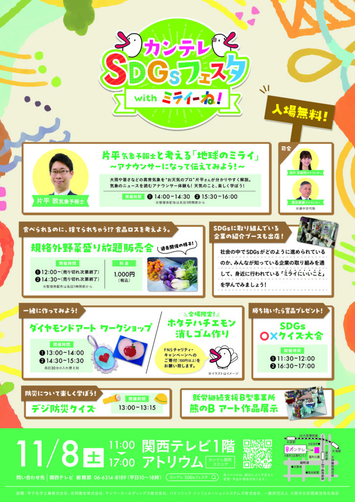 【告知】11月8日「カンテレSDGsフェスタwithミライーね!」を開催します!